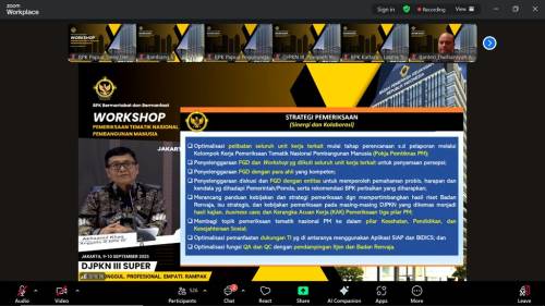 JAKARTA, Humas BPK – Badan Pemeriksa Keuangan (BPK) menegaskan komitmennya dalam mengawal program prioritas nasional di bidang pembangunan manusia untuk mewujudkan Generasi Emas 2045. Hal tersebut disampaikan Anggota III BPK Akhsanul Khaq, saat membuka workshop Pemeriksaan Tematik Nasional Pembangunan Manusia yang dilaksanakan secara daring di Jakarta, Selasa (9/9).
