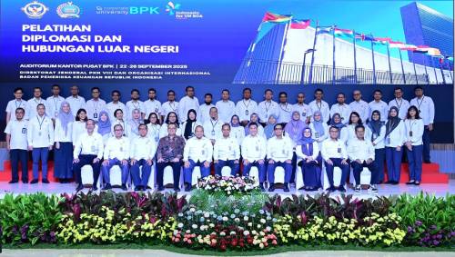 JAKARTA, Humas BPK – Wakil Ketua Badan Pemeriksa Keuangan (BPK), Budi Prijono, secara resmi membuka Pelatihan Diplomasi dan Hubungan Luar Negeri di Kantor Pusat BPK, Jakarta, Senin (22/9). Pelatihan ini diselenggarakan untuk meningkatkan kompetensi pemeriksa BPK dalam bidang diplomasi, negosiasi, keprotokolan, penyusunan laporan, komunikasi internasional, serta aspek psikologis dalam penugasan ke luar negeri.